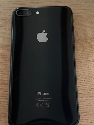 Telefono cellulare Apple iPhone 8 Plus in colore nero. Ha una capacità di 64GB. Si accende senza problemi e ha ancora una capacità della batteria dell'81%. Lo schermo e il retro presentano alcune righe, ma il cellulare funziona perfettamente - è stato usato poco perché era il telefono di lavoro. Non viene fornito con cavo o scatola.