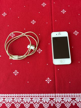 Telefono cellulare iPhone 4s in colore bianco. - Schermo da 3,5 pollici. - Fotocamera posteriore da 8 MP. - Include cavo di ricarica.