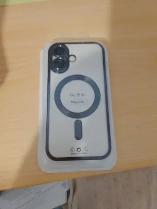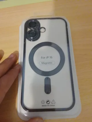 Cover magnetica nuova per iPhone 16. Compatibile con la ricarica magnetica (MagSafe). Colore trasparente con protezione per la fotocamera. Prodotto nuovo, mai utilizzato e ancora nella sua confezione. Ideale per proteggere il telefono e utilizzare il caricatore magnetico. Prezzo: 8€ (trattabile).