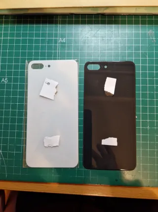 In vendita due cristalli posteriori per iPhone 8 Plus, uno bianco e uno nero. - Ricambi per iPhone 8 Plus. - Colori disponibili: bianco e nero.