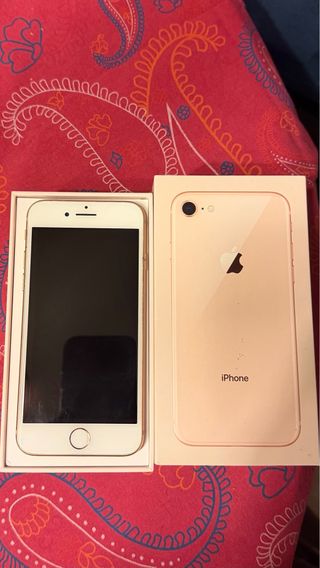 iPhone 8 color oro rosa, in perfette condizioni, batteria al 100% appena sostituita (non originale). Include protezione per lo schermo e cover posteriore. Non include caricatore né scatola.