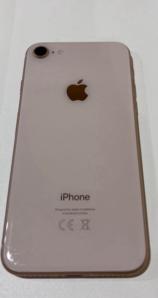 Telefono cellulare iPhone 8 in colore rosa/dorato. Incluso: - Scatola originale. - Auricolari. - Caricabatterie e cavo.
