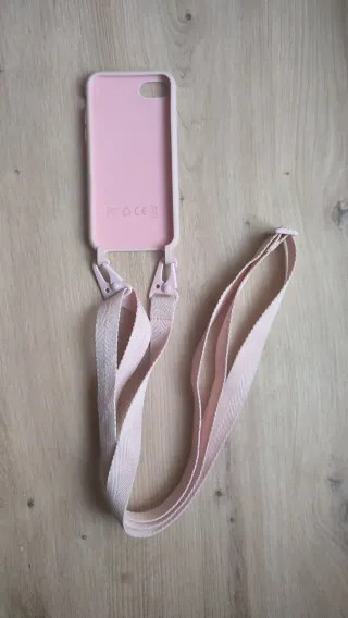 Custodia protettiva per iPhone con pratico ciondolo. Compatibile con: iPhone 7, iPhone 8, iPhone SE (2ª generazione / 2020), iPhone SE (3ª generazione / 2022). Colore rosa pallido. Ciondolo in tessuto regolabile.