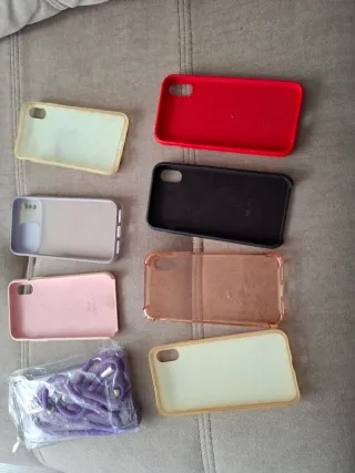 Set di 8 custodie per iPhone 11. Singolarmente a 2€ ciascuna - Custodia azzurra - Custodia trasparente con scomparto - Custodia beige - Custodia blu - Custodia marrone - Custodia viola con bordo rosso (trasparente) - Custodia nera con ventosa - Custodia rosa pallido