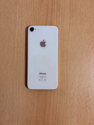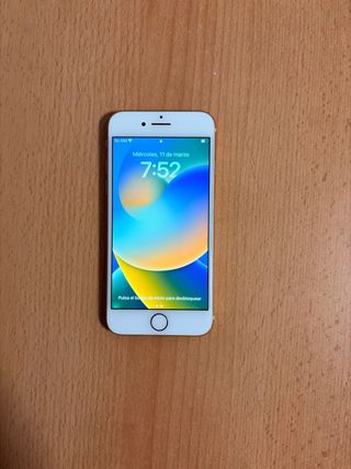 Telefono cellulare iPhone 8 in colore oro. Per le parti: - Schermo da 4,7 pollici. - Fotocamera posteriore da 12 MP. - Chip A11 Bionic.