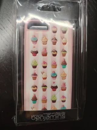 Cover per iPhone 7 Plus / 8 plus con un simpatico disegno di cupcake su sfondo a righe rosa. - Design a tema cupcake. - Compatibile con iPhone 7 Plus e 8 Plus