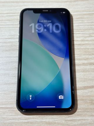 Telefono cellulare iPhone 11 in colore nero. - 64 GB. - Buona salute della batteria. - Senza alcun urto o riparazione. - Stato perfetto. - Scontrino di acquisto originale.