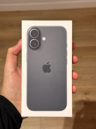 Telefono cellulare iPhone 16 in colore nero. Design elegante e moderno. Finitura opaca. Usato meno di due mesi. Senza segni di utilizzo. Con fattura e scatola. Fornito con accessori (cavo e custodia).