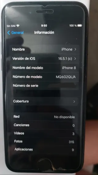 Telefono cellulare Apple iPhone 8 in colore nero. Il dispositivo si trova nella sua confezione originale. Il telefono funziona, ma è necessario riparare un chip perché il WIFI a volte si connette e altre no. Se lo vuoi per un uso limitato o come telefono di riserva va bene. *Prezzo negoziabile*