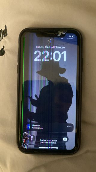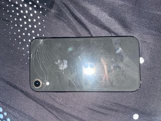iPhone XR da 64GB in colore nero. Presenta danni allo schermo e al retro. Capacità di archiviazione: 64GB. Colore: Nero. Include custodia regalo.