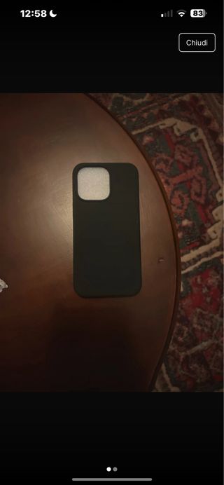 Vendo custodia nera in silicone per iPhone 14 Pro Max, nuova. Include un comodo cordino nero per il trasporto. - Custodia in silicone morbida al tatto - Colore nero - Perfetta per proteggere il tuo iPhone - Cordino regolabile e comodo da indossare
