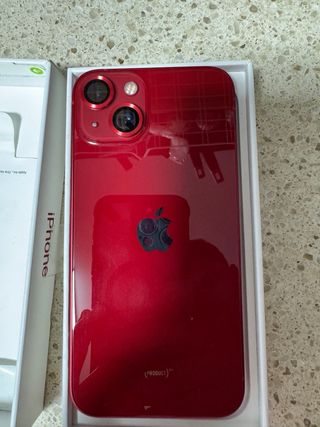 Telefono cellulare iPhone 13 in colore rosso con 128 GB di spazio di archiviazione. Include custodia e caricabatterie. Design elegante e moderno. Foto di alta qualità con doppia fotocamera.