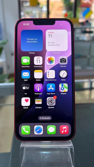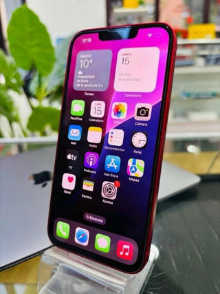 Telefono cellulare iPhone 13 in colore rosso. - Schermo da 6,1 pollici. - Capacità di archiviazione di 128 GB.