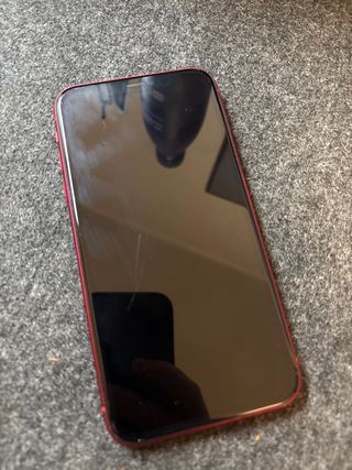 Telefono cellulare iPhone XR in colore rosso. - Schermo da 6,1 pollici. - Fotocamera posteriore da 12 MP. - Chip A12 Bionic. iPhone XR completamente funzionale. Face ID, fotocamere e touch OK. Schermo con alcune righe e piccola fessura. Vetro posteriore scheggiato.