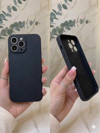 Set di cover per iPhone X. - Cover trasparente con bordo rosso. - Cover nera opaca. - Cover nera con foro rotondo.