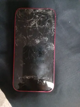Telefono cellulare iPhone 12 in colore rosso. - Schermo rotto. - Cover posteriore danneggiata.