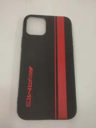 Custodia protettiva per iPhone 11 Pro con un design sportivo. Colore nero con dettagli in rosso. Logo AMG in rilievo.