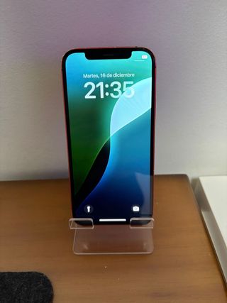 Telefono cellulare Apple iPhone 12 mini in colore rosso, 128 GB. Alcune ammaccature sulla scocca, vedere le foto, per il resto molto bene. Lo consegno con una custodia, cavo di ricarica e protezione per lo schermo. Batteria al 73%. - Schermo da 5,4 pollici. - Chip A14 Bionic. - Sistema di fotocamera dual avanzato.