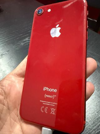 Telefono cellulare iPhone 8 in colore rosso. - Schermo da 4,7 pollici. - Fotocamera posteriore da 12 MP. - Chip A11 Bionic.