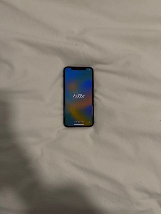Telefono cellulare iPhone X di Apple. - Schermo da 5,8 pollici. - Fotocamera doppia da 12 MP. - Chip A11 Bionic. Batteria 70,2%.