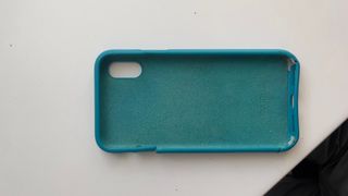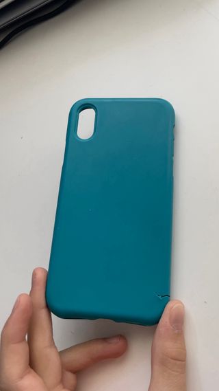 Custodia protettiva per iPhone X di alta qualità. Include piccole imperfezioni, tutte segnalate nelle foto. Colore blu turchese. Interno foderato per proteggere il telefono. Design che consente l'accesso a tutti i pulsanti e le porte.