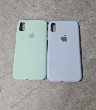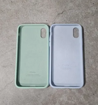 Due custodie per iPhone X/XS nei colori verde menta e azzurro chiaro. - Custodia verde menta. - Custodia azzurro chiaro.