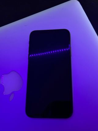 iPhone X di colore nero, con il vetro posteriore danneggiato. - Schermo OLED. - Chip A11 Bionic. - Fotocamera posteriore da 12 MP.