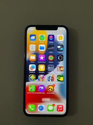 Telefono cellulare in condizioni accettabili, tutto funziona perfettamente, schermo con un urto ma funziona correttamente, e sul retro presenta scheggiature ma non influisce sull'uso, batteria al 76% di salute, la fotocamera posteriore funziona bene, ma il 0,5x e il teleobiettivo non funzionano. Si consegna con scatola e custodia.