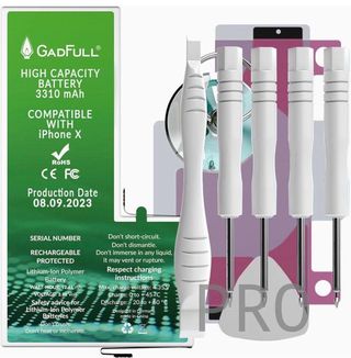Batteria di alta capacità GadFull di ricambio per iPhone X | Data di produzione 2023 | Include manuale di riparazione e kit professionale di strumenti
