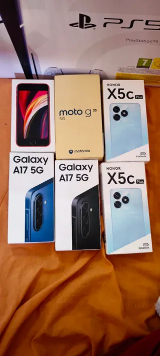 Vendo un lotto di 6 telefoni cellulari vari. Ideale per rivendita, regalo o uso personale. 🌟 Articoli completamente nuovi e sigillati: (Questi 4 telefoni) 2x Samsung Galaxy A17 5G (128GB) (Colori Nero e blu) ◼️ 🟦 2x Honor X5C Plus (128GB) (Entrambi blu) ✨ Articoli in buono stato (semi nuovi): 1x iPhone SE 2 Gen (Rosso Product 🟥): 64 GB di spazio di archiviazione, 3 GB di RAM. Telefono in buone condizioni, conserva l'88% della sua capacità massima e include scatola, caricatore, manuali, custodia. 1x Motorola Moto G35 5G (128GB): Telefono da 128 GB. Conserva almeno il 90% della sua capacità massima e include scatola, caricatore, custodia, manuali. (Prezzo negoziabile)