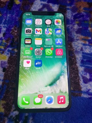 Telefono cellulare iPhone X in buone condizioni, anche se ha il vetro posteriore rotto, ma non influisce sul funzionamento. Batteria sostituita e funziona come il primo giorno, batteria installata 2 mesi fa.