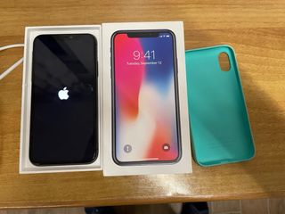 Vendo iPhone X con 64GB di memoria. La batteria è al 100%. -Scatola originale. - Colore nero. - Custodia protettiva color verde acqua inclusa. - Caricabatterie e cavo inclusi. Perfettamente funzionante nessun tipo di problema
