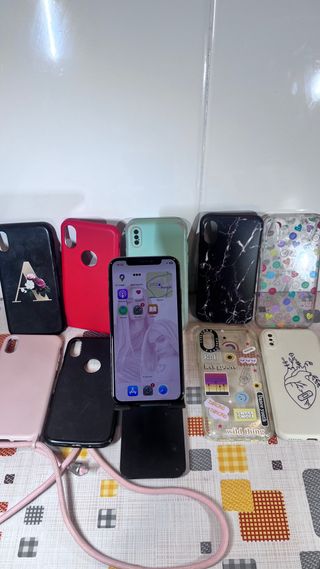 Vendo iPhone X con 64GB di spazio di archiviazione. Include vari accessori: - Cover di diversi colori e design. - Caricatore. - Cavo.