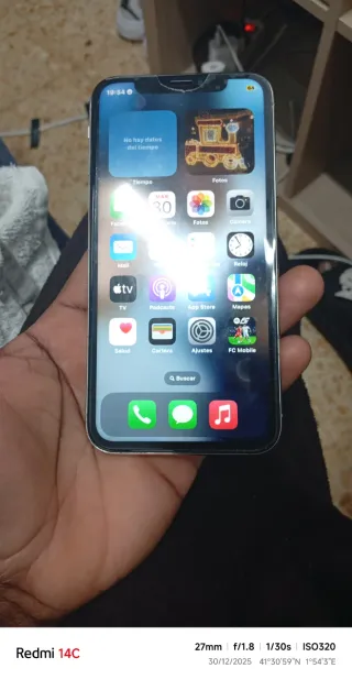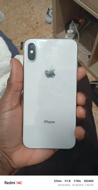 Apple iPhone X 64GB in colore bianco. In buone condizioni, completamente revisionato e funzionante correttamente. Batteria al 100% di salute. Presenta una piccola fessura nella cover posteriore che non ne pregiudica il funzionamento. Face ID non disponibile. 🔧 Specifiche tecniche: Display OLED Super Retina da 5,8 pollici Processore Apple A11 Bionic: fluido per l'uso quotidiano Doppia fotocamera posteriore da 12 MP/fotocamera frontale da 7 MP 128 GB di spazio di archiviazione Sblocca con codice 🏪 Siamo un negozio: 📍 NexoPhone — Via Pico Mampodre 5, Vallecas (Madrid) Professionisti nella vendita e riparazione di telefoni cellulari con garanzia.