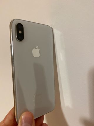 Telefono cellulare iPhone X in bianco. Funziona perfettamente. Ha un leggero urto nell'angolo sinistro (visibile in foto) ma lo schermo funziona bene. La batteria dura 8 ore. - Schermo da 5,8 pollici. - Fotocamera doppia da 12 MP. - Chip A11 Bionic.