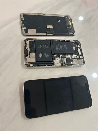 iPhone X per parti. Il telefono è smontato. Non funzionano: - Schermo nero. - Componenti interni visibili.