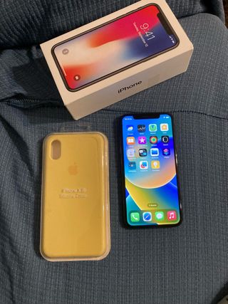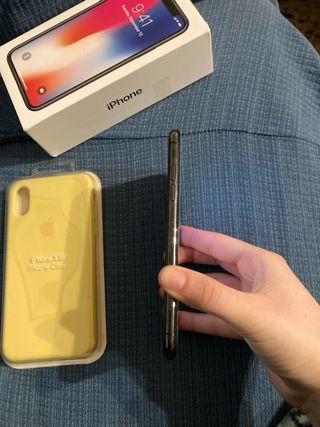 iPhone X nero 64 GB con scatola originale. Custodia in silicone per iPhone X in colore giallo Apple nuova sigillata. Tutto perfetto esteticamente e funzionalmente.