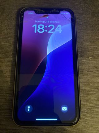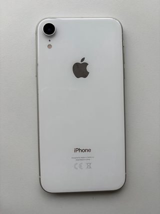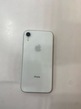Telefono cellulare iPhone XR in bianco. Il retro è danneggiato ma è completamente funzionale. Si vende con custodia per protezione totale. iOS 18.3.2 installato. La batteria dura solo un giorno con uso. - Schermo da 6,1 pollici. - Fotocamera posteriore da 12 MP. - Chip A12 Bionic.