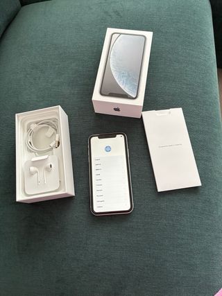 Telefono cellulare iPhone XR in bianco. Include scatola originale e accessori. - Auricolari nuovi non usati - Cavo di ricarica Lightning - Documentazione. Non presenta segni di usura.