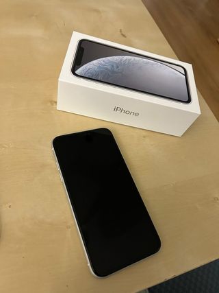 Telefono cellulare iPhone XR in bianco. Buono stato, tutto funziona bene, la batteria è al 77% e dovrebbe essere sostituita, da qui il prezzo, ma regge bene per tutto il giorno. I segni sullo schermo sono dovuti al proteggi schermo.