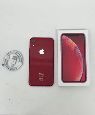 Telefono cellulare iPhone XR in colore rosso con 64GB di spazio di archiviazione. - Schermo da 6.1 pollici. - Fotocamera posteriore da 12MP. - Chip A12 Bionic.