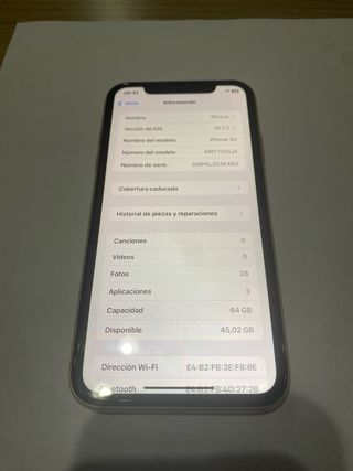 iPhone XR con 64 GB di spazio di archiviazione. - Modello: iPhone XR - Capacità: 64 GB - Versione iOS: 18.3.2 - Numero di modello: MRY42QL/A - Numero di serie: FFWDD06VKXK1 - Indirizzo Wi-Fi: 20:E8:74:3A:E6:F6 - Bluetooth: 20:E8:74:37:A4:F5 - Firmware del modem: 7.01.01. Viene fornito come si vede nelle foto, con la sua scatola originale e la custodia. Batteria appena sostituita. Come normale per l'uso, ci sono alcuni segni.
