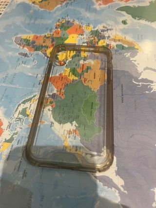 Custodia trasparente per iPhone XR, in ottime condizioni. Design chiaro che permette di vedere il colore originale del telefono. Protezione per i bordi del dispositivo.