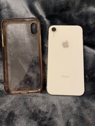 iPhone XR in colore bianco. Include custodia protettiva trasparente. Modello: iPhone XR, Colore: Bianco, Marca: Apple.