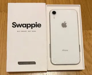 iPhone XR di colore bianco con alcuni difetti. - La batteria ha una durata limitata. - Il vetro posteriore presenta delle crepe.