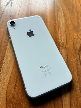 Telefono cellulare iPhone XR in colore bianco. - Schermo da 6,1 pollici. - Fotocamera posteriore da 12 MP. - Chip A12 Bionic. Capacità della batteria all'80%.