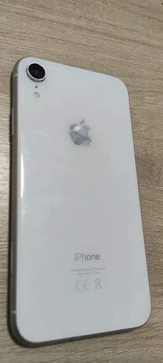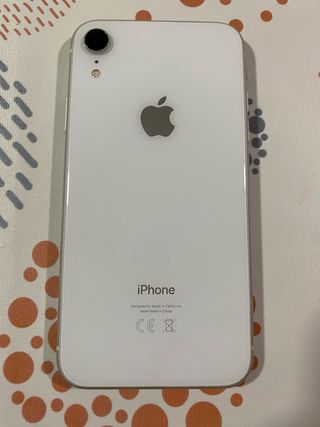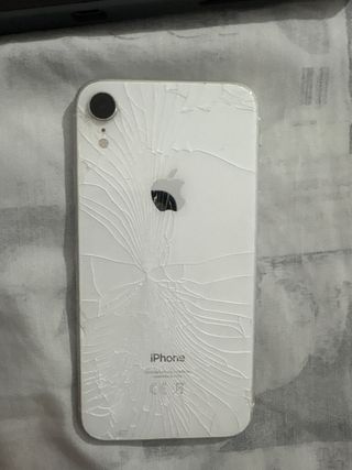 Telefono cellulare iPhone XR in bianco. Il retro è danneggiato ma è completamente funzionale. Si vende con custodia per protezione totale. iOS 18.3.2 installato. La batteria dura solo un giorno con uso. - Schermo da 6,1 pollici. - Fotocamera posteriore da 12 MP. - Chip A12 Bionic.
