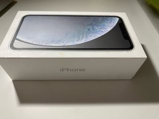 Scatola originale per iPhone XR. Design bianco. Logo di iPhone visibile.