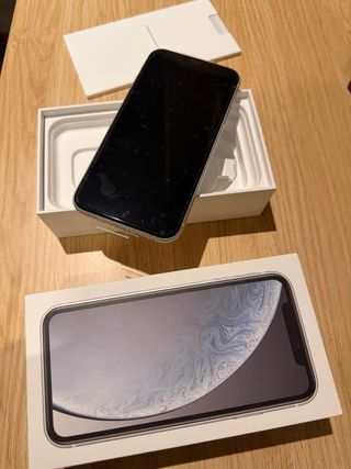 Telefono cellulare iPhone XR in bianco. Include scatola originale e accessori. - Auricolari nuovi non usati - Cavo di ricarica Lightning - Documentazione. Non presenta segni di usura.
