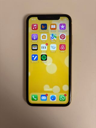 Telefono cellulare iPhone XR in colore giallo con 256GB di memoria. In ottime condizioni. Alcune macchie sullo schermo ma non influenzano il funzionamento. Con cavo incluso. Tutto funziona correttamente. - Schermo da 6.1 pollici. - Fotocamera posteriore da 12MP. - Fotocamera frontale TrueDepth da 7MP. - Batteria all'81%. Prezzi negoziabili.